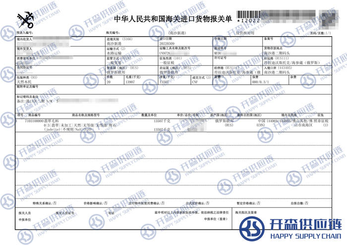 【導讀】您正在閱讀的是關于俄羅斯翡翠毛料進口報關代理案例【經典案例】的內容,本文由開森寶石進口報關代理小編整理編寫;