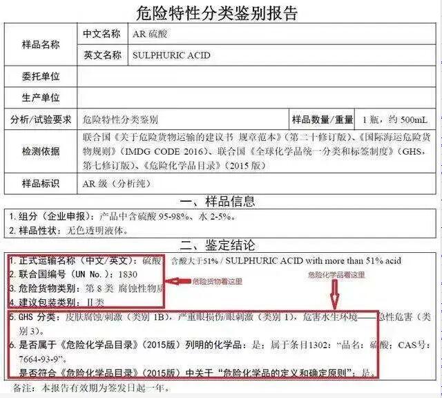 但上述條目繁雜,有時(shí)難以把握,可以向有資質(zhì)的機(jī)構(gòu)申請(qǐng)危險(xiǎn)特性鑒別報(bào)告,同時(shí)鑒別危險(xiǎn)貨物種類和危險(xiǎn)化學(xué)品的危險(xiǎn)特性。