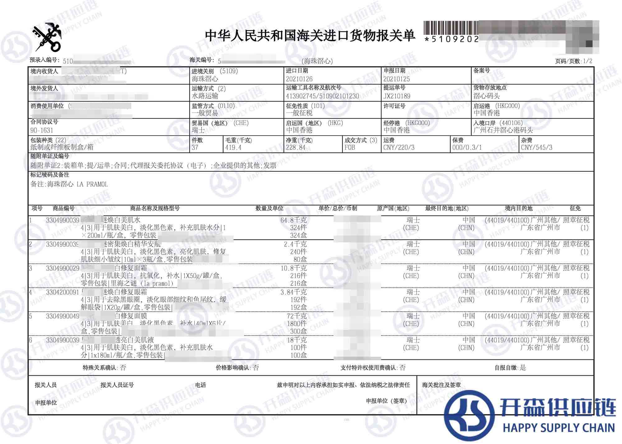 原文標題:瑞士面膜進口報關代理案例分享【經典案例】