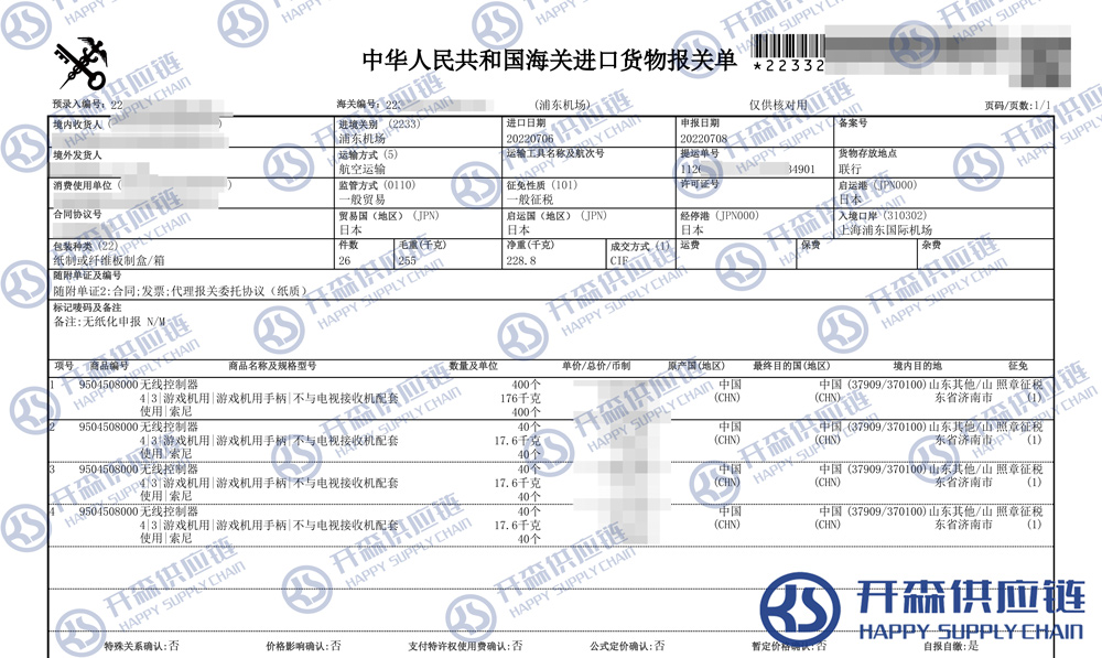 開(kāi)森進(jìn)口供應(yīng)鏈擁有豐富的游戲機(jī)進(jìn)口報(bào)關(guān)操作經(jīng)驗(yàn)及案例,十余年操作經(jīng)驗(yàn)及案例可供參考,可按需定制游戲機(jī)進(jìn)口方案,幫助客戶(hù)解決進(jìn)口難題,快速進(jìn)口清關(guān)到港到貨。