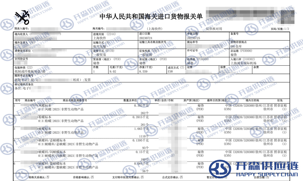一、秘魯動物標(biāo)本進(jìn)口報關(guān)代理案例詳情
