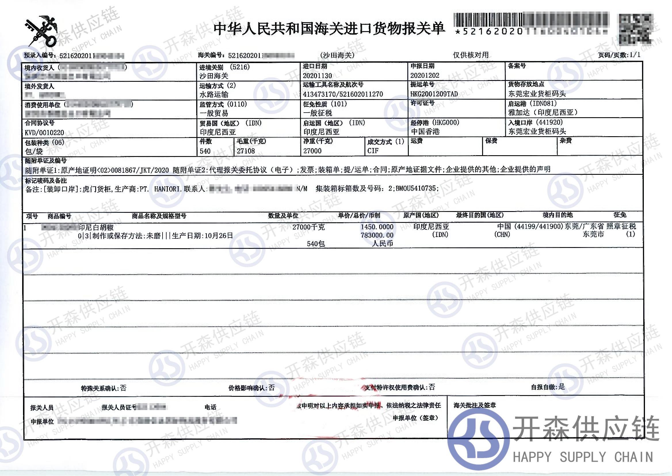 從印度尼西亞進口一批胡椒到東莞碼頭,我司提供門到門進口一站式清關服務,開森擁有十余年農副產品進口清關經(jīng)驗及案例,為客戶提供量身制作的進口方案,讓客戶進口省時省心省成本。