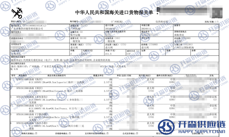 【導讀】您正在閱讀的是關于廣州機場意大利油畫進口報關代理服務【清關案例】的內容,本文由開森油畫進口報關代理小編整理編寫;